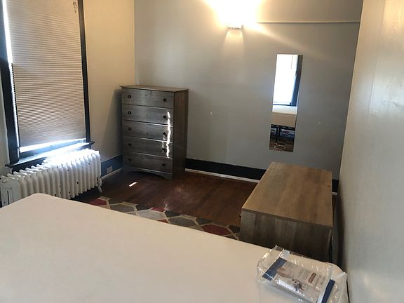 6 bedrooms, 2 living rooms, 3 baths, and 3 kitchens (one on each floor). Extra office/storage/den room. House has off-street parking, nice open front yard and large porch.