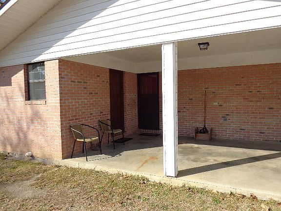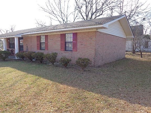 Brick home on corner lot shown with neat landscaping and shaded lot. Living Room leads into open dining room. Washer and Dryer located in closet in dining area. Kitchen had good cabinet space with vent fan. Black stove and black refrigerator may or may not stay with home. Kitchen sink under window. U shaped kitchen helps conserve steps. Seller to replace kitchen countertop. Down hallway is full bath on left with sink separate from shower. Master Bedroom has half bath and spacious walk-in closet. Two other bedrooms spacious with nice closets. Attic ventilator fan. Alarm System. Evan has good ally access. Storage room at carport. Small front porch in front of house provides room for bench. Location makes getting to grocery store or bank easy. Call soon.