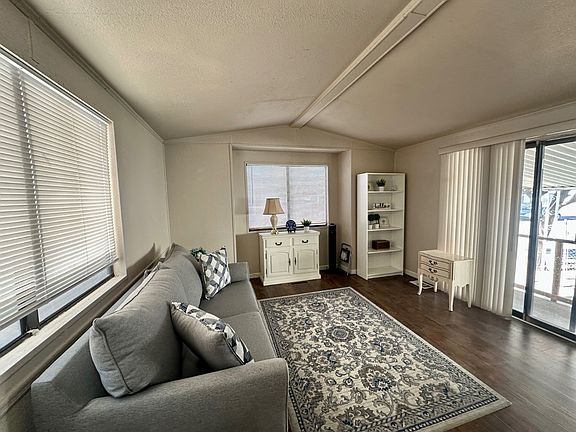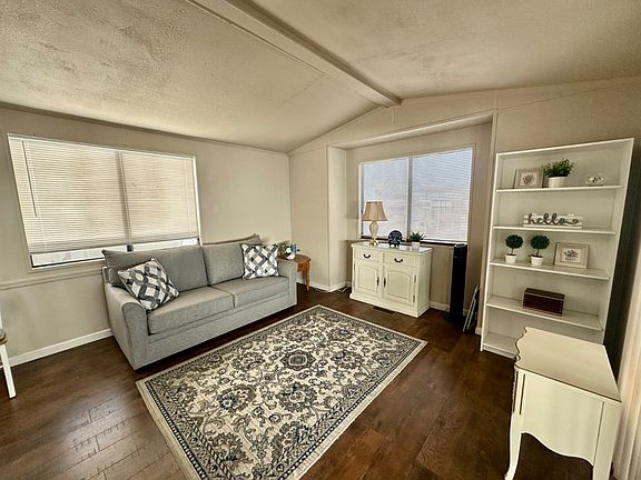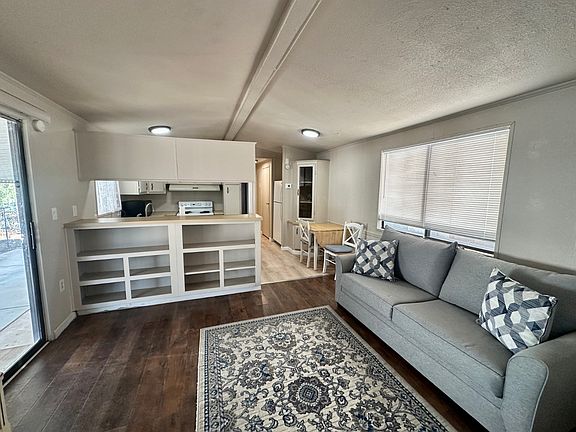 ALL AGES PARK! PET FRIENDLY! LOW LOT RENT ONLY $540 MONTH Partially furnished. 1 BR 1 BA with updates that include new AC, new water heater, wood flooring (no carpet), NEW whole house plumbing, fresh paint touch ups and partially fenced yard. Front living room with patio slider door. Built in "cubby" area. Eat in step saver kitchen w small built in corner hutch. Bath has standard tub shower. Bedroom fits a king bed and has full length wall closets plus separate linen closet. Bedroom also has 2nd slider door to rear patio area. Tandem 2 car parking. Please note, cash sale as lenders do not borrow under $30,000. To park qualify must show income three times the base lot rent and no criminal record.