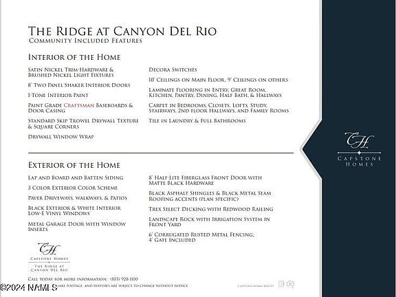 This stunning home is located in The Ridge at Canyon Del Rio - Flagstaff's newest single family home community!! Wonderfully located in the heart of Flagstaff, close to shopping, schools, golfing, and outdoor activities. With 5 bedrooms, 4 baths, bonus room, great room open concept, 3 car garage, Plan 2562 has it all! All plans are built with state of the art energy efficient features, including spray foam insulation, tankless water heater, gas appliances, Energy Recovery Ventilator, and much more. Several floor plans to choose from, call listing agent for details.