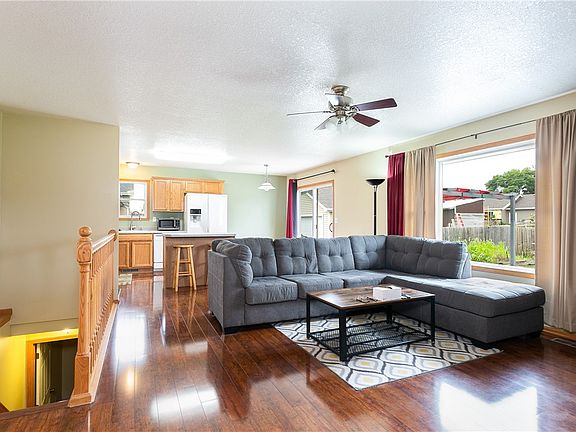 Great home ready to move in. Main level features a great sized living room that is open to the kitchen. Kitchen features all appliances, that stay with home, great counter space w/ the center island. There is an eat in area with patio doors that lead to the concrete patio w/ pergola for some nice cover. There is a flower garden as well. The 3 bedroom are all good sized w/ nice closet space. The full bath completes the main level. The lower level has some finish (250 approximately) with a living room with a gas fireplace. There is a 1/2 bath, laundry room and a huge space that could be finished as an additional bedroom. The two car garage has built in shelving and a gas line if you wanted to add a heater for a heated garage. There is also an irrigation system (current owner has never used it). Come take a look at this home.