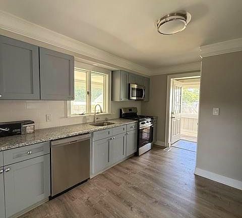 Step into this beautifully renovated home featuring 2 spacious bedrooms, 1 full bathroom, and a comfortable living room that flows effortlessly into a stunning kitchen, oversized sunroom perfect for relaxing or entertaining year-round. The home boasts brand-new laminate flooring, plush new carpeting, and fresh paint throughout, giving it a modern and inviting feel. Enjoy cooking in the brand-new kitchen, complete with beautiful custom cabinets and elegant quartz countertops, paired with all-new appliances for a sleek and functional space. A separate laundry room adds convenience, while the partially finished basement offers extra space for a home office, gym, or additional storage. Outside, the private backyard provides a peaceful retreat ideal for gardening, grilling, or simply unwinding. This move-in-ready gem offers a perfect blend of comfort, style, and functionality. Don't miss your chance to call it home!