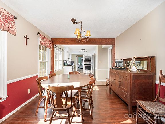 Beautifully private countryside home tucked among the trees. Home is located in Olde Towne Estates, a neighborhood that offers the peace and quiet of country living within the city limits. Inside welcomes you with stunning sunken living room on the left with vaulted ceilings featured exposed wood beam plus focal brick gas fireplace perfect for hosting family and friends. Double glass doors lead out onto the covered porch overlooking the serene backyard. Dining area flows into kitchen with black decorative backsplash, tan counters and plenty of white cabinets for storage. Primary bedroom has attached full bath with private vanity area separate from shower. Additional guest room on main level plus full hall bath great for family. Upstairs find 2 additional rooms allowing for more guests or a home office room + a full bath. The beauty extends from inside to out as you enjoy the fully fenced in backyard from the porch or the open deck great for grilling. Home is completely surrounded by trees providing you the ultimate getaway while still being just 1 mile to Downtown Wadesboro with plenty of shops & restaurants.