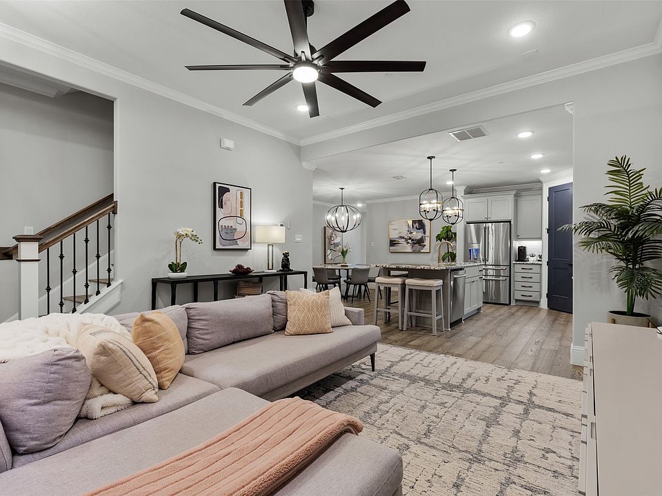 Stunning townhome built in 2020 by award winning Windmiller Custom Homes. The townhome is located in The Parkland, a small community in The River District with 12 finished townhomes & 4 units currently under construction with the builder. The original units have upgraded counters, fixtures, hardwood floors & 10' ceilings throughout. The 1st floor has an open floor plan with ample space for entertaining. The living flows seamlessly to the kitchen & dining. The well appointed kitchen boasts a grand island & sep bar area. The flex room on the 1st floor is currently used as a home gym, but would make a great study or playroom. Upstairs includes a 2nd living room, 3 bedrooms, laundry & outdoor living. The master suite has a sitting area, ensuite bath & walk-in closet. The secondary bedrooms share a shower-tub, but each have their own vanities & sinks. The property is comfortable for primary or lock & leave residence. There is easy access to the trails, 7th street corridor & the stockyards!