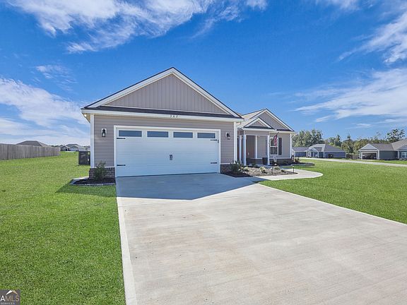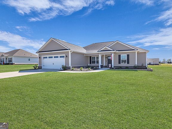 LIKE NEW 4 bedroom, 2 bathroom home in Grimball Pointe! This home has been immaculately kept and customized! Through the front door is a foyer entry way leading you to an open floor plan. The spacious living room is open to the kitchen which gives you granite countertops, an island with breakfast bar, stainless steel appliances, and walk in pantry. The flex space/office is the perfect blend of style and sophistication with built in desk space, shelving and cabinetry! The bedrooms are set up in a split plan, with the master featuring an elegant space with a large walk in closet and en-suite with double vanities, soaking tub, and separate shower. The three other bedrooms give great additional spaces for growing families, hosting guests, and more. You'll notice the wainscoting that has been added in areas throughout the home, giving a nice elevated touch. The laundry room is generously sized and has been customized with cabinetry to give extra storage. This corner lot totals 0.65 acres, with an extended patio, giving you plenty of room for kids and pets at play and entertaining on nights and weekends. Located convenient to I-16, and in the sought after Southeast Bulloch School District!