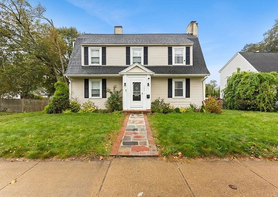 Colonial-style single-family home, featuring a center-entrance staircase and classic crown molding, offering a formal layout suited to entertaining. The home spans approximately 1,992 sq ft, with 4 bedrooms and 1 ½ bathrooms. Elegant hardwood floors throughout, a formal dining room that leads to an oversized fireplace living room, and doors to a balcony porch. Master bedroom features two closets. Finished basement. Walk out lower level. Easy access to Rt 24, shopping, parks and commuter rail.