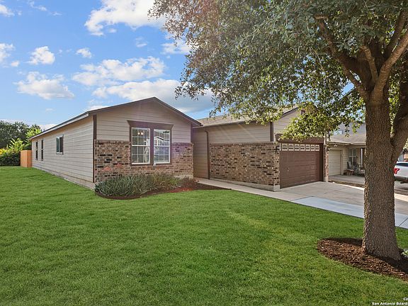 This inviting one-story home, set on a desirable corner lot, offers a thoughtful layout designed for both comfort and functionality. The entry opens into an airy, open-concept living space with a cozy sitting area and a spacious main living room-perfect for gathering. To the left of the entry, two secondary bedrooms and a full bath are ideal for loved ones, guests, or a home office. The functional kitchen is equipped with stainless steel appliances and a breakfast bar, seamlessly connecting to the dining area for easy entertaining. The primary suite is a true retreat, featuring a sitting room, generous walk-in closet, and a full bath with dual vanities, a separate shower, and a garden tub. Step outside to discover a paver patio and well-sized backyard-ready to be transformed into your dream outdoor space, whether you envision a pool, pergola, or custom entertaining area. Located just minutes from Hwy 151 and Loop 410, this home provides quick access to Lackland Air Force Base, SeaWorld, and a wide array of shopping, dining, and entertainment.