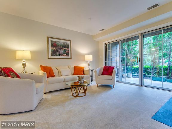 Great Kentlands condo! Fresh paint and carpet throughout. Spacious master suite with direct patio access, large walk-in closet and well equipped en-suite master bath with dual vanities and a soaking tub. Sunny living room with balcony slider and wood burning fireplace. Kitchen with new appliances, breakfast bar, separate dining room. Big second bedroom and guest bath. Upgraded HVAC! Close to pool!