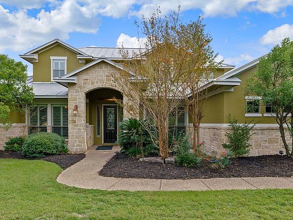Mediterranean Luxury: 4 bedrooms study and game-room with screened in walkout balcony Dual masters with sitting rooms on the first floor. Chefs kitchen for entertaining with huge island dual sinks and commercial cooktop and double ovens. Master bedroom boasts sumptuous walk in closet with built ins separate vanities and spacious soaking tub and walk in shower. Walk out to nearly an acre of lush live oak trees in-ground pool and hot tub with built in fire pit. Upstairs game-room has wet bar and homework area plus generous bedrooms with walk in closets. Cheerfully freshly painted inside and outside 3 car garage standing seam metal roof, exquisite landscaping with privacy move In ready!