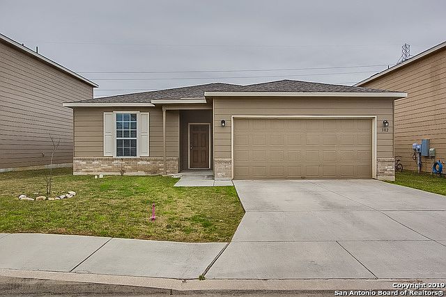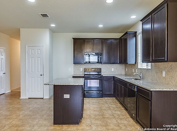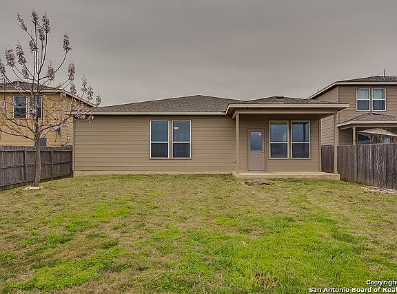 Built in 2015, this Schertz offers granite kitchen countertops, a walk-in closet in the master suite, and a two-car garage. A park is part of the Kensington Ranch HOA. Home comes with a 30-day buyback guarantee. Terms and conditions apply.
