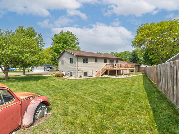 Welcome to this stunning split-level home that exudes functionality. The exterior features durable steel siding that enhances the curb appeal while providing long-lasting protection. The roof has recently been updated with new shingles, ensuring peace of mind for years to come. Situated on a generous-sized lot, the property boasts a large yard that provides ample space for outdoor activities or simply enjoying the natural surroundings. The yard has been meticulously maintained, creating a beautiful outdoor retreat with the retro car adding the perfect look! As you step inside, you'll be greeted by the tasteful updates that have been carried throughout the home. From modern fixtures to stylish finishes, every detail has been carefully considered to create a welcoming environment. One of the standout features of this property is the impressive 4-stall garage, providing plenty of room for parking multiple vehicles and additional storage space for tools, equipment, or recreational items.