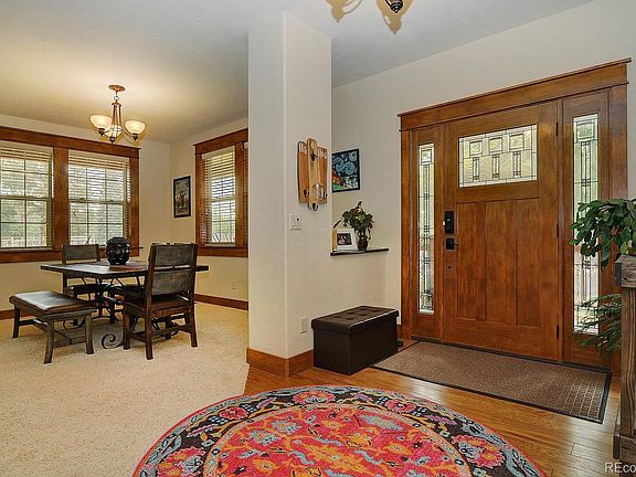 The quality of this handcrafted and custom-designed home is apparent from the instant you pull up. The exquisite wrap around covered front porch provides the perfect setting for entertaining and spending precious time in the mountains. The main floor private office with French doors, beautiful hearth surrounding a gas fireplace, and rich wood trim create an inspiring home office/school environment. The open floor plan flows from a formal dining setting with access to the covered deck and side yard in to an expansive kitchen. Lovely custom cabinets, generous island, extra granite countertop space with casual dining, built-in desk, and room for hosting small and large gatherings. Relax by the gas fireplace while enjoying time in the spacious living room, just steps to the back patio and secluded outdoor living space. A half bath for guests, large laundry room, walk-in pantry and easy access to the oversized 2 car garage, round out the main floor living space. Stately entrance leads to an attractive staircase and the second-floor bedrooms. Luxurious master suite embraces the comforts of home and an opportunity to relax. Plenty of storage in the walk-in master closet just off the generous 5 piece bath with soaking tub awashed in natural sunlight. Two additional spacious bedrooms enjoy mountain views, plenty of closet space, and share a quality finished full bath. This 2 lot, corner location, neatly fenced with land for gardening, parking and a storage shed for your favorite gear after a busy day enjoying the activities of this treasured mountain town. A short bike ride or walk to the Town Park, library, shopping, schools and dining and yet minutes will find you in the nearby mountains or hot springs. This special home, built-in 2008, has been carefully maintained and is move-in ready complete with solar system for lower monthly expenses. Fantastic opportunity to purchase a one-of-a-kind home offering flexibility for today's live/work lifestyle.