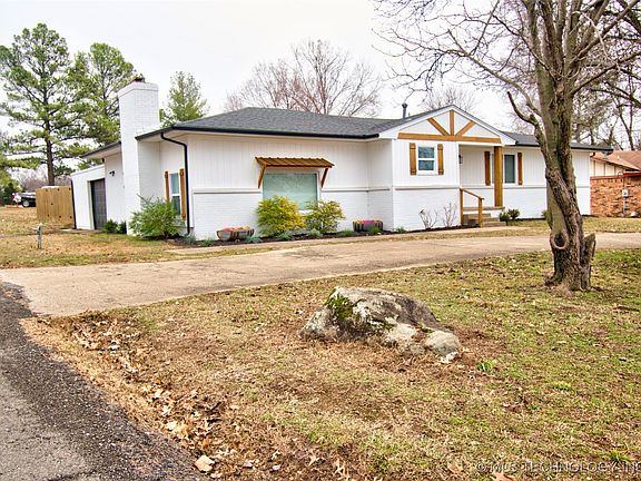 Perfectly Charming 3 bedroom, 2 bath home in Fort Gibson schools. This home sits on a spacious corner lot with privacy fence with a circle driveway. Roof, gutters and house leveled in 2020. Privacy fenced installed 2021. Family room remodeled in 2021.New exterior paint, wood siding, cedar trim, shutter and garage door in 2022. Renovated laundry room/mud room/home office 2023. New furnace 2024.