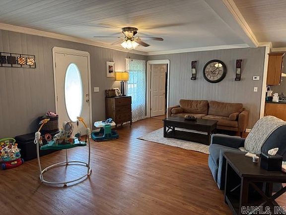 2BR, 1BA HOME IN TOWN!! This 1272 square foot home has just been completely replumbed with pex lines in 2024 along with new central heat and air in 2024! Living room, kitchen and dining room combo. Kitchen comes with stove and pantry. Home is wheelchair accessible with a handicap shower and no stairs/steps into the home. Large bathroom. Metal siding and shingle roof. Two car carport cover, 12X16 storage building. City utilities, corner .26 acre lot. Taxes just $202 after homestead credit!