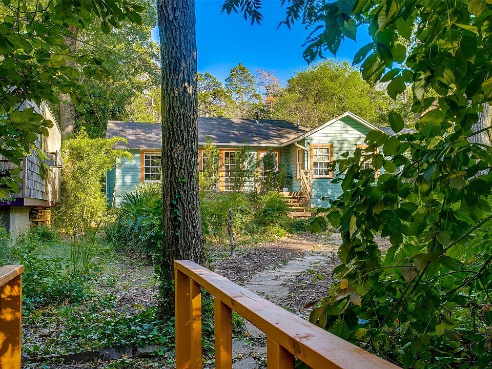 Hiding in plain site just beyond the quaint creek-side bridge; arrive to an adorable cottage hidden beneath a magnificent tree canopy. This cozy cottage, lives large! Boasting 1521sf with 2 living rooms, home office & 3 beds and 2 updated baths. Guest bedrooms share a spacious bath with a walk-in shower. The third bedroom offers it’s own private entry and en-suite bath. Kitchen features gas range, granite and opens to breakfast nook. Both dining and den overlook a private flagstone courtyard with peaceful waterfall feature. Rich knotty pine and hardwoods adorn the formal living which features a decorative brick fireplace. A wall of windows offer a breathtaking view of the serene natural setting. Just off the living room is the home's study. Away from it all, yet remarkably convenient! Bishop Arts (3 miles) & DT Dallas (6 miles). 2 covered carport with additional guest street parking located on 302 Weston. Easy to show. New Survey Available.