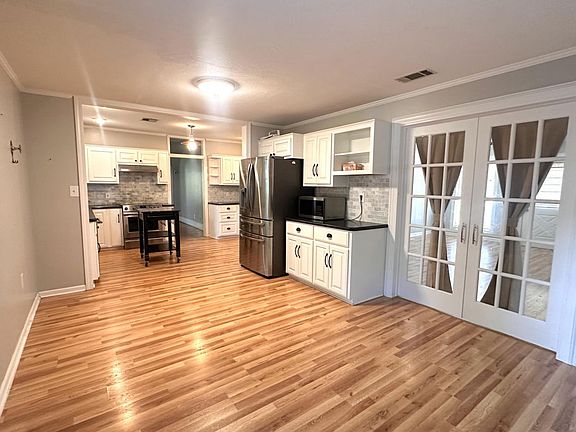 Sellers are offering up to $2000 towards BUYER'S CLOSING COSTS with an acceptable offer!! CHARM, CHARACTER, CONVENIENCE! This updated cottage is situated on a corner, fenced-in lot in the center of Deridder. It has been freshly updated but the original charm and character still remain! The welcoming front porch is perfect for rocking chairs and relaxing. Inside you are greeted with bright, spacious rooms to include 2 large bedrooms, 2 full baths, gourmet kitchen, formal dining plus an additional room with french-doors that can be used as another bedroom or living space. Fiber internet is now available! You must see this one for yourself!
