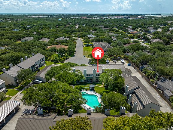 Step into comfort & coastal charm with this FULLY FURNISHED, 2-bedroom, 1.5-bath condo located in the highly sought after Rockport Country Club! Located near the golf course and just steps from the sparkling pool! Positioned at the end of the building for added privacy, this updated home offers both tranquility and convenience in one of Rockport's most desirable communities. You'll love the fresh coastal color palette, newer furniture & decor, & low maintenance luxury vinyl flooring. The spacious kitchen features granite countertops, stainless steel appliances, & a cute coastal backsplash. An open floor plan that boasts a tiled fireplace, roomy breakfast bar, & fabulous plantation shutters! Both bedrooms have large closets, ceiling fans, & the primary suite includes a private balcony overlooking the pool. The updated primary bath offers a luxurious jetted tub that is perfect for unwinding after a day on the course or at the beach. Additional features include one covered parking space-steps away from the front door & a huge outdoor storage closet for all your golf & beach gear. Whether you're looking for a full-time residence or a relaxing weekend escape, this Rockport gem delivers resort style living with easy pool access & laid-back coastal charm. Bring your flip-flops and your 9-iron-your Rockport lifestyle awaits