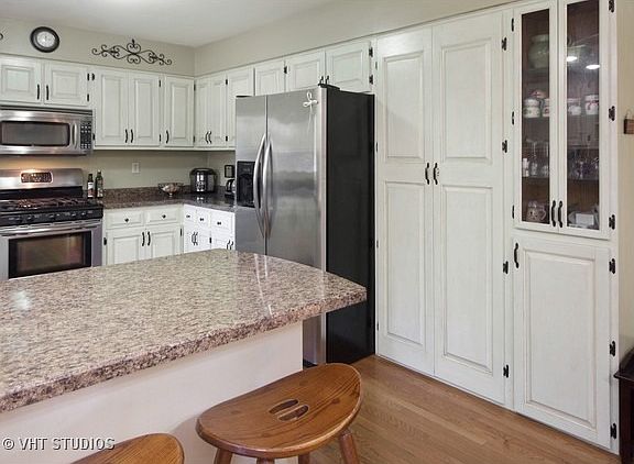 This non-traditional split level home offers a wonderful opportunity to live in highly coveted Bonita Vista subdivision. An enormous Kitchen features hardwood flooring, an abundance of antique ivory painted cabinets, updated countertops, a large breakfast bar & stainless steel appliances. A comfortable Family Room features a beautiful brick wall w/a gas fireplace accented w/recessed lighting. The secluded Master Bedroom is on its own floor & features a luxury bath & 11x11 walk in closet. All secondary Bedrooms are generously sized w/ample closet space & ceiling fans. A tranquil backyard has several mature trees, a deck & enclosed gazebo. There is a shed for additional storage. Bonita Vista is free of HOA fees, and offers use of San Carlos Lake for a small annual fee. Conveniently located within minutes of I55 & I80. This will not last long!