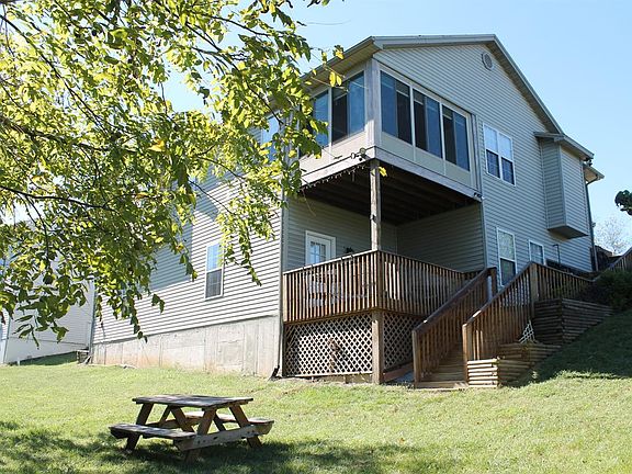 Come home to a country feel with lots of oak and walnut trees plus peach, nectarine and apple fruit trees dotting the backyard. There are also blackberry and raspberry bushes, an herb garden area and two strawberry patches (if you can beat the deer to the harvest) - there is a children's play area that stays with the house on over a half acre with invisible pet fencing on the whole lot plus a large concrete-floored 12 x 24 storage bldg with electric! This is on a low traffic dead-end street as well. Walk in to your great room with vaulted ceiling, gas fireplace and awesome hardwood flooring. Eat dinner in the formal dining room, kitchen bar or the three-seasons screened-in porch overlooking your treed backyard. Or watch the fireworks from your porch with downtown views. Have a great time in the finished basement with a bedroom, full bath, bonus rooms, large closets, ceramic tile, high ceilings and a surround sound system that stays. This level opens to a covered deck with yard access.
