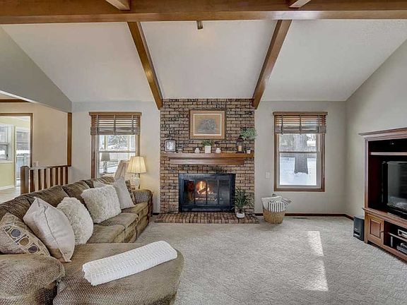 AWESOME LOCATION & PLENTY OF SPACE to entertain relatives & friends in this beautiful ranch-style home. Walk in the front door & be warmly welcomed in to a spacious living room featuring a beautiful brick-surrounded gas FP & vaulted ceiling layered w/ gorgeous wood beams. Main level also features a large dining room that leads out to a bright 4-season sunroom. Floors in the kitchen, dining room, foyer & hallway recently updated w/ luxury vinyl plank flooring. New kitchen appliances, and master bedroom ensuite w/ updates to master bath, including granite countertops. Enjoy plenty of options for entertainment in the wide-open lower level that has been newly carpeted & includes wet bar, half bath & large storage area. ML laundry, new backyard fence, & within walking distance to schools.