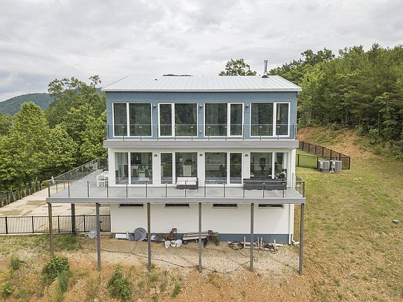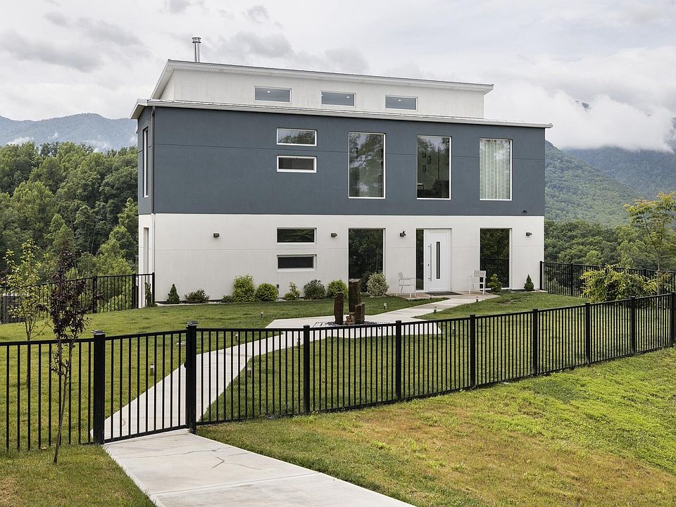 A striking designer villa for sale in Cosby that combines contemporary finesse with stylish elegance for the perfect overnight experience, permanent residence or a private getaway. With projected income of $80,000+ per year, This modern home with 2.26 acres is distinguished by its stylish architecture, fine contemporary design and sleek aesthetics.A low-maintenance home of outstanding space, style and quality, this newly built property offers sophisticated beauty, with clean lines and sweeping curves creating an inviting atmosphere that is both stylish and irresistible with contemporary luxury and upscale comforts.Delivering an elegant ambience for relaxation, entertainment and maximum enjoyment, it is brimming with lifestyle appeal. Inside, the open floor plan and contemporary decor envelop owners and guests in sunny comfort. The living area of 4400+ sqft design is symmetrically minimal, yet surprisingly inviting. Walls are kept white and pristine, showcasing selected decorative elements. Almost frameless glazed expanses ensure awe-inspiring majestic mountain views, complementing the serene atmosphere inside. The interior pampers with three stylish bedrooms, four impeccable bathrooms, office, bonus room and a host of indulgent touches. Walls of glass, spanning the length of the home, blur the distinction between indoor and outdoor spaces. Every single element, starting from the overall architecture to the smallest design details, pursues a contemporary philosophy and the art of modern living details: Geo thermal water heater, high-end water treatment system, the commercial grade roof is a 100 yr galvanized metal, tile & concrete floors, UPVC Windows with 50 yr triple glazed-security film and all are solar filmed except south balcony for natural winter warmth. Exterior paint should be good for 20-30 years, high-end Bosch appliances, Marine grade glass and stainless steel on balconies. Extremely efficient with average monthly electric $120.