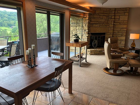 Frank Lloyd Wright-style 2 bed, 2 bath top floor condo on the beautiful House on the Rock golf course. 3 walk out balconies. New retractable awning on balcony facing golf course. New furnace, air conditioner, water heater, water softener and new microwave. Newer stainless steel appliances and granite counter tops. front loading washer and dryer. Close to American Players Theatre, House on the Rock and scenic hiking trails.