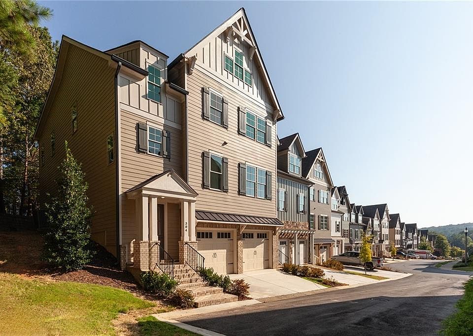 Welcome to your dream home in the prestigious Overlook at Sixes luxury townhome community! This stunning home not only offers unparalleled golfing opportunities but also boasts an elegant design flooded with natural light. The open floor plan features a family room adorned with a beautiful fireplace and built-in cabinets, creating a cozy and functional space for relaxation and entertainment. The gourmet kitchen is a chef's delight, equipped with quartz countertops, a tasteful tile backsplash, under-cabinet lighting, and soft-close doors and drawers. It seamlessly opens to a separate dining room, perfect for entertaining while offering a full view of the family room. Step outside to enjoy outdoor living on the beautiful covered porch with composite decking. The main level includes a spacious bedroom and a full bathroom, ideal for guests or a home office. Throughout the home, you'll find soaring 10-foot ceilings and elegant 8-foot doors. A wide staircase gracefully leads through all three levels. Upstairs, the master bedroom is a serene retreat featuring tray ceilings and abundant natural light. The luxurious master bathroom includes a separate tub, a tiled shower, and a generous walk-in closet. An additional third bedroom on the upper level comes with its own full bath. The unfinished basement awaits your creative vision-it can be transformed into a game room, media room, or a fourth bedroom. The bathroom is already stubbed and ready for completion, offering great potential for customization. Additional amenities include a three-car garage and an optional elevator for added convenience. Beyond the golf courses, the community is ideally located close to boating facilities, parks, biking trails, outlet shopping, and expressways that provide easy access to downtown Atlanta. Brookwood Plan! Go and Show!