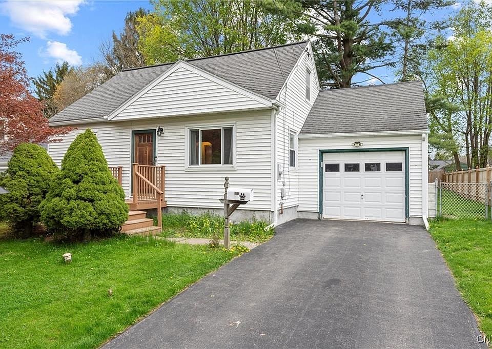 Adorable Cape Cod, three bedrooms, one full bathroom, large living room with hardwood floors throughout, spacious kitchen, full basement for plenty of storage or man/woman's cave, 1 car garage, flat backyard, North Syracuse schools, convenient location close to everything, can be furnished or unfurnished, utilities not included, dogs allowed, available 11/10.