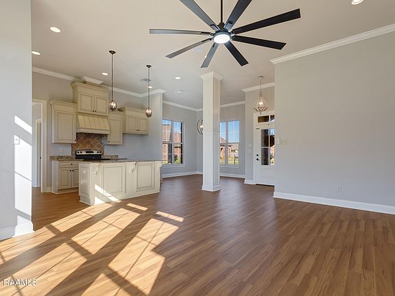 When you walk through the front door of this beautiful home, you enter a large open living/kitchen/dining room that is filled with natural light from the extra tall windows. Built by Manuel Builders, this custom, split floor plan home has 12 foot ceilings, new floors, and is freshly painted throughout. The kitchen has beautiful cabinets, granite countertops, an island and the window above the kitchen sink overlooks the large backyard and patio. The primary bathroom has two walk-in closets, a tub, a separate shower, and cabinetry with two sinks. A second bedroom also has a walk in closet and the third bedroom has a double door closet. There is a separate laundry room, a 2 car garage, and a security system. The home is at the end of a cul-de-sac and the lot is the highest and largest lot in the subdivision. The home has never flooded and flood insurance is not required.
