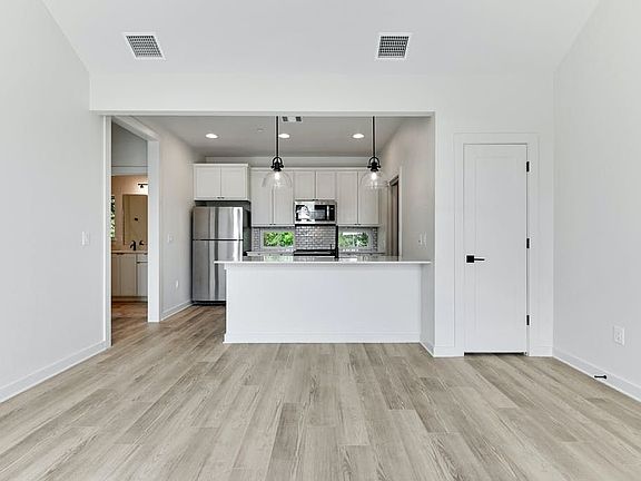 Modern appliancesOffice nichesLarge windowsQuartz countertopsWood-style floorsSolid-paneled doorsVaulted ceilings