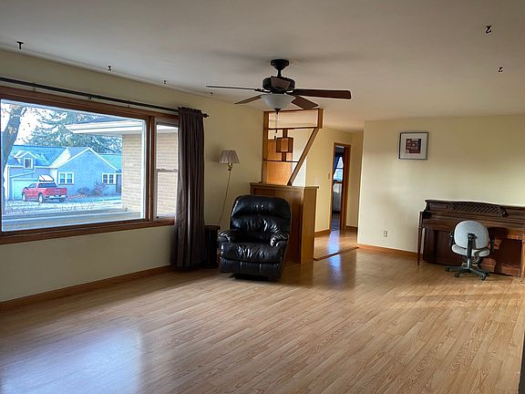 View this well built 3 bedroom, 2 bath brick home on large fenced double lot. Includes 1 car attached and 1+ car detached garages with newer roof. Large living room with wood burning fireplace. Parquet floors in the bedrooms. Eat-in kitchen has bar with appliances "as is". Primary bedroom with full bath. Full useable basement that could easily be finished off for more living space. Nice neighborhood close to grade school. Selling home "AS IS" convention or cash only. Priced to sell. Call for a private showing today!