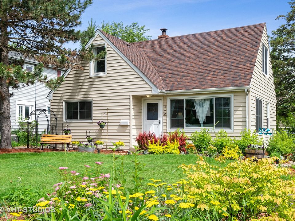 Charming Cape Cod situated on a beautifully landscaped corner lot with many updates throughout. This 3-bedroom home offers spacious rooms, tons of natural light and sits on over a .25-acre lot. French doors off the living room lead into a bedroom with sliding glass door access to the backyard. Enjoy the new kitchen with eat-in area complete with stainless steel appliances, tile back-splash and plenty of cabinet and granite counter space. The 2nd floor features a spacious master bedroom with a roomy half bath and a spacious 2nd bedroom with a tandem room perfect for an office area. Both bedrooms have beautiful built-ins. Entertain this summer in the huge fully fenced backyard. Plenty of parking on the side driveway which lead to a 2.5 car garage. Updates include: most main floor windows, sliding glass patio door, kitchen, baths and much more. Short walk to Sunset Park. Minutes to Schools, Yorktown Mall, Restaurants and Highway. Close to the train. This is a must see!