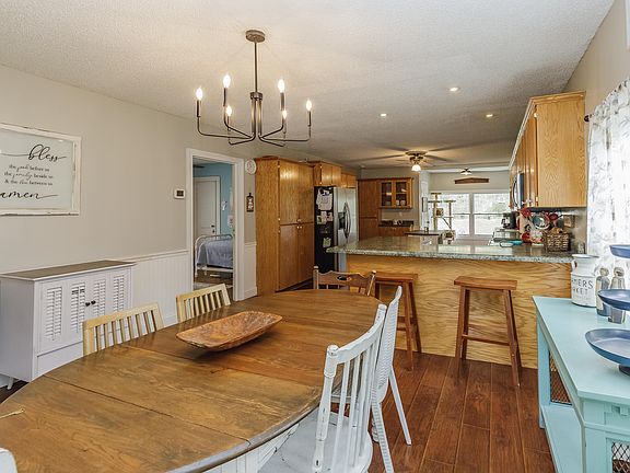 The kitchen/dining/breakfast area is all open and very spacious. Laundry is located off of the kitchen. Living room boasts a beautiful brick, gas log fireplace and access to the partial basement with a small bonus room. Would be ideal for storage, work out room, etc. The front porch is covered and at the back of home, you will find a spacious, open deck perfect for entertaining or enjoying your morning coffee while overlooking the beautiful pond. As an added bonus, the workshop/building on the property offers ample space for additional storage, workshop, crafting, etc. Owner has made some renovations such as adding the second bathroom, stairway to basement from interior of home, wood siding on front of home, etc. This home and land have so many possibilities. Call today to schedule a private viewing!