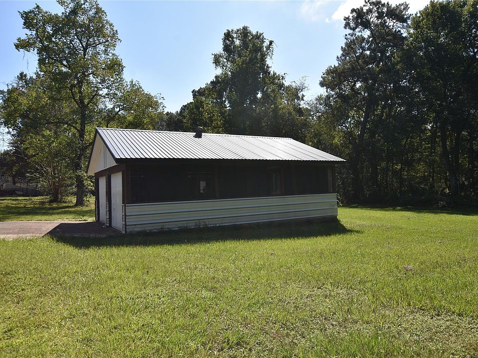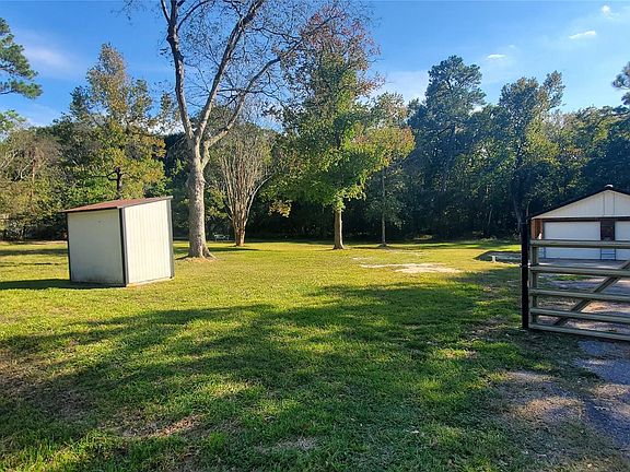 This property comes with a 720 square foot garage and a water well, and it includes three lots, adding up to almost 3/4 of an acre. It is located on a tributary to Lake Houston, offering excellent fishing opportunities, and there is also a neighborhood park nearby. However, please note that the property is situated in the 100-year floodplain, which necessitates building on piers. The land is graced with mature trees, adding to the beauty of the surroundings.