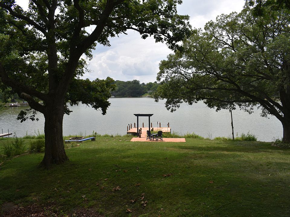 Brick Ranch with Walkout Lower Level on Bayles Lake. This home has been professionally gutted & mostly remodeled on the main level- producing a contemporary layout! The chef of the family will love the gourmet kitchen- with plenty of counter space, huge center island, hidden storage, pantry & SS appliances. It opens to the Living Room with fireplace & Dinng Room The master suite has been redesigned & now features a walk-in closet & full bath with dual sinks, whirlpool & separate shower. LL full bath has also been nicely remodeled. Newest addition is the lakeside bedroom/ den with 3 sides of lake views! Walkout lower level has Family Room with fireplace, huge bedroom, Office nook & large laundry room with storage. Bar area is plumbed in for 2nd kitchen. Main floor hallway has 3/4 bath & office that needs finishing. Laminate flooring up & down. Boiler baseboard heat with newer furnace/ forced air too. Large 2.5 car attached garage. Yard has wildflower gardens, sprawling patio, tall trees & a 30x30 private dock- all with sunset views. Nearby I57 expressway makes it easy to get to Chicago, Bloomington and Champaign!