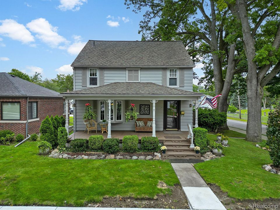 **Highest and Best Due 7 PM Sunday 9/17** Just five blocks from Downtown Rochester's Main Street! This 1927 Colonial will charm you and is filled with history. "Twin Oaks Sub" named after the towering Oak trees on the south side of the home. Boasting 1563 square feet with 3 bedrooms and 1.5 baths plus additional bath in basement. Large covered front porch with historic pillars moved from an original Victorian house, back deck with pergola overlooking fenced back yard and two car detached garage. Wallside windows, brand new 2023 boiler, Certain-teed Roofing with lifetime guarantee. Brand new carpet in living room and stairs, large primary suite with walk in closet, 2nd floor is all original pine flooring, basement has large finished space with fireplace. Lots of natural light, Amazing square footage and highly desirable location for the price. Potential for renovation or addition shows 6 figure potential returns. Enjoy this premier downtown Rochester street with walk ability to Main Street, Paint Creek Trail and all Rochester has to offer! Don't delay!!! Agent Related to Seller* Showings 1-7 pm daily