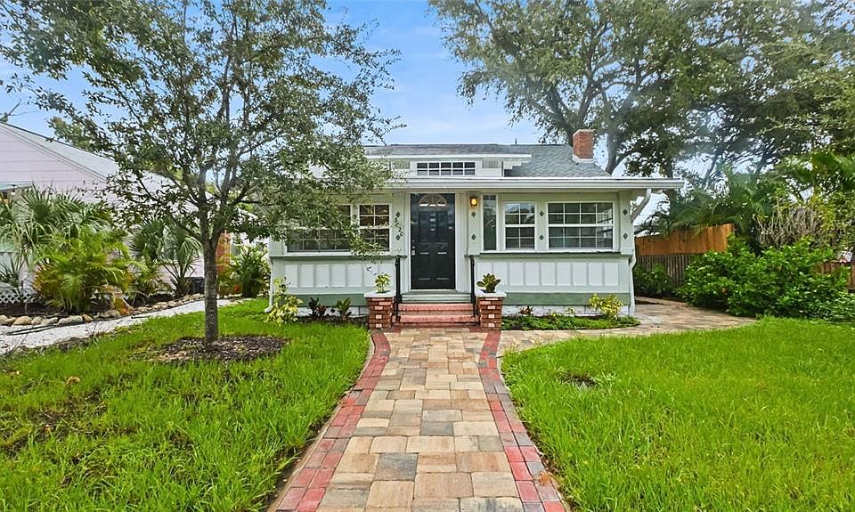 Step into a piece of Gulfport history with this charming two-story Craftsman bungalow, perfectly positioned just moments from the beach and vibrant Art District. The open and flexible floor plan showcases the home's original historic charm, from the decorative brick fireplace to the custom built-in bookshelves, desk, and classic hardware. A spacious front Florida room provides a sunlit welcome, while the den offers an ideal home office space. Climb the stairs to discover the hidden gem—a massive 12'x25' finished attic bedroom. Outside, enjoy the serene, new paver walkways and lush landscaping, all beautifully framed by mature trees. A backyard shed with a washer hook-up, alley access, and a convenient parking pad complete this delightful property, all just steps from Gulfport's best restaurants, shopping, and nightlife