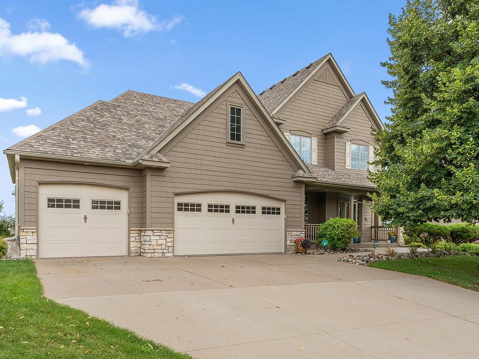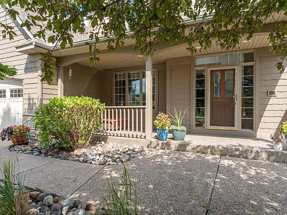 Wake up to spectacular sunrises in this meticulously maintained, light-filled home where oversized windows bring the outdoors in. Immediately upon entering, you will be greeted with an abundance of natural light and a beautiful stone fireplace that stretches up 2 floors. Hardwood floors lead you into the home with elegant columns framing a flexible space perfect for a home office or formal dining. The main floor spacious primary suite features tiered ceilings, a luxurious bath with ceramic tile, dual vanities, soaking tub & an oversized walk-in closet with a window.. The kitchen is a chef’s dream with brand new quartz countertops, unique center island & ample cabinetry. Upstairs, you'll find three generously sized bedrooms. The walkout lower level offers independent living with two bedrooms, a full bath, bonus room with French doors, full kitchen & a large family/recreation area, complete with in-floor heating. Enjoy the evening fires in the firepit and the stunning skyscape while sitting on the outdoor patio Additional highlights include a 3 stall heated garage with built-in cabinets & workbench. Brand new furnace, newer A/C & water heater. Low-maintenance landscaping with underground sprinklers. A change in family dynamics is the only reason this beloved home is available. Come and experience comfort, space and the views that must be seen.