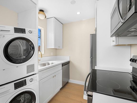 The kitchen features sleek appliances, including a refrigerator, stove, and dishwasher, as well as plenty of counter space for all of your cooking needs. The bathroom has also been fully renovated, with a new vanity and fixtures that add a touch of luxury. These bright turnkey apartments also include a washer and dryer in-unit.