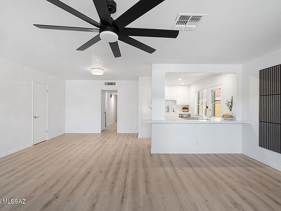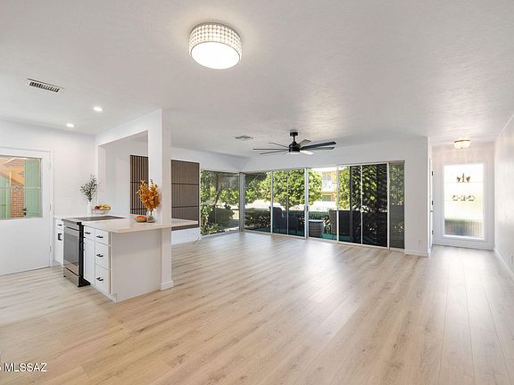 Rare opportunity to own a fully renovated mid-century modern condo in the highly desirable Villa Catalina, a 55 + community in historic Sam Hughes. This two bedroom, two bath unit has been thoughtfully updated with a remodeled kitchen featuring quartz countertops, sleek cabinetry, and stainless-steel appliances, along with stylishly renovated bathrooms, new flooring, and designer finishes throughout. Villa Catalina, listed on the National Historic Registry, offers a low-maintenance lifestyle with HOA fees covering all utilities, property taxes, structure insurance, and common area maintenance. Residents enjoy beautifully landscaped grounds, two pools (one Heated), and an unbeatable central location just minutes from the University of Arizona, shopping, dining, and Reid Park Zoo.