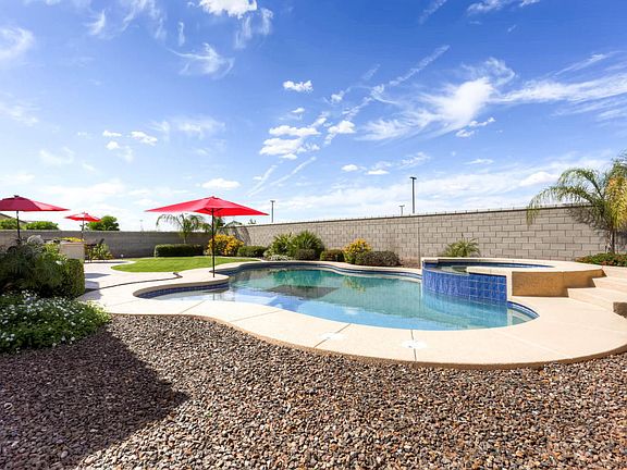 A unique over sized lot, sought after 4 car garage, non-tandem. Affordable family home in Lovely Gilbert AZ. Plenty of space for cars, toys or watercrafts. Close to Freeway and some of the best schools and shopping in the East Valley. Home is move in ready to entertain the best of friends and family, 2 Dining areas inside, and Large Patio, Pool, Over Sized Jacuzzi and BBQ Island with built in cooler. Party Time.
