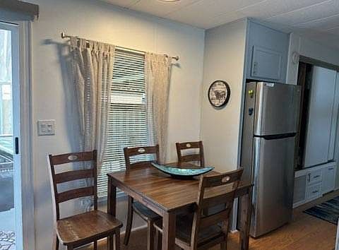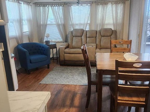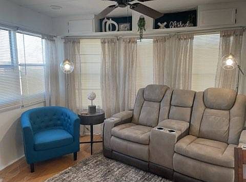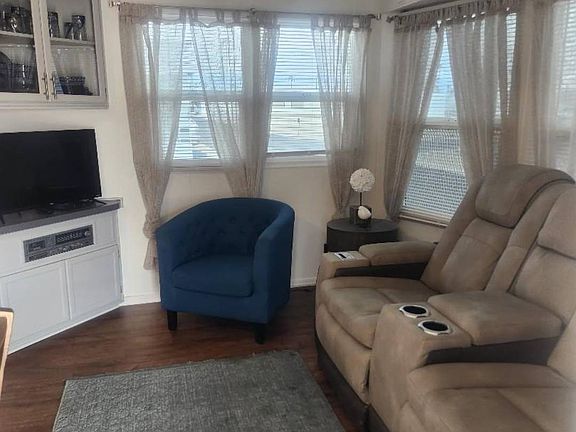 This charming turn key ready meticulously cared-for home features 1 bed, 1 bath, and a cozy Arizona room perfect for relaxing or entertaining. The bright and airy living room welcomes you in, while the beautiful kitchen offers new appliances and ample cabinet space for all your storage needs. Enjoy elegant wood flooring throughout, along with a spacious, upgraded bathroom featuring a walk-in shower. You'll find plenty of closet space throughout the home to keep everything organized. Recently upgrades includes, All new electrical lines, new appliances, new flooring in the Arizona room, new air conditioning unit, freshly painted cupboards, new windows, screens, and sliding door (installed 2 years ago) and exterior freshly painted this spring. This home is fully furnished with stylish, gently used furniture (only 2 years old) and golf cart is included. Located in a welcoming 55+ community and park approval is required. Don't miss out on this move-in-ready gem!