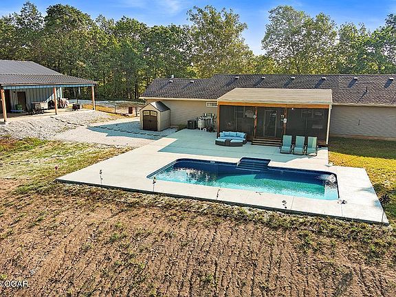 Rare find! Introducing a rural retreat tucked away outside of town, nestled on this nearly 2 acre lot. Brand NEW salt water in-ground pool with large concrete surround. Plenty of storage and room for projects with an attached 2 car garage, as well as the brand NEW detached 40X45 shop. This 3 bedroom home invites you to experience both comfort and tranquility- The property seamlessly blends modern updates with the serenity of nature, offering an escape from the hustle and bustle. Boasting almost 1600 square feet, this home features a spacious primary suite with en suite bathroom and large walk-in closet and split bedroom floor plan. The kitchen offers ample countertop and cabinet space, and an eat-in dining area. Wood burning stove is a centerpiece in living room. Covered and screened-in back deck make for the perfect outdoor space to entertain and enjoy the peace and quiet of outdoors. Fenced in backyard and newer roof. Located within the Carl Junction School District, & this property qualifies for zero down RD loan. Don't miss your opportunity on this incredible property and all it has to offer! Call today!