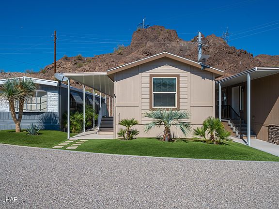 **ON LEASED LAND. Experience the ultimate vacation home in one of the most desirable locations on the river! This beautifully upgraded 2-bed, 2-bath home offers the perfect blend of style, comfort and recreation. Move in ready and waiting for you! Set within a serene community near Parker Dam, this home enjoys 500 feet of shared riverfront with calm waters ideal for boating, swimming, and relaxation. Multiple docks, Sea Doo parking, and a riverfront splash pool and palapas provide endless opportunities for fun in the sun. Boat enthusiasts will appreciate the ample parking, close river launch and the convenience of Lake Havasu launching just two minutes away! Inside, the open-concept floor plan is designed for entertaining, with stylish finishes & furniture, and a like-new feel throughout. Features include a spacious kitchen and the convenience of inside laundry. Community amenities further enhance the lifestyle and convenience. Whether you are entertaining friends, relaxing under a palapa or setting out for a day on the lake, this property captures the very best of river and lake living. Schedule your private tour today!
