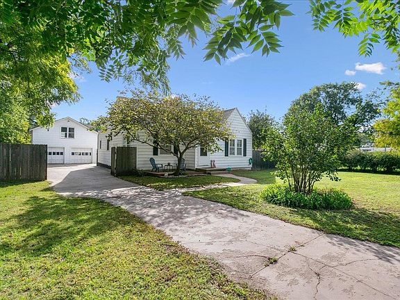Discover a rare gem in Wichita! This charming 1930s bungalow offers 3 bedrooms, a 2-car detached garage with loft, and a spacious ¾ acre lot full of mature trees. Step inside and you’ll be welcomed by original hardwood floors, a decorative fireplace, and timeless details throughout. The kitchen features modern updates, a pantry and an eating bar; perfect for everyday living or entertaining. The front living room flows into a formal dining room, while the large primary suite boasts abundant natural light and peaceful views of the backyard. Two additional bedrooms are generously sized, with a full bath conveniently nearby. At the back of the home, enjoy a versatile sunroom or family room with walls of windows overlooking your private, fenced yard. The oversized 2-car garage includes doors with openers, a loft space with a bath already plumbed in, and endless potential for a workshop, studio, or guest retreat. Additional highlights include a full basement with laundry and separate entrance. Don’t miss this opportunity. Schedule your showing today and see why this home is one you’ll want at the top of your list!