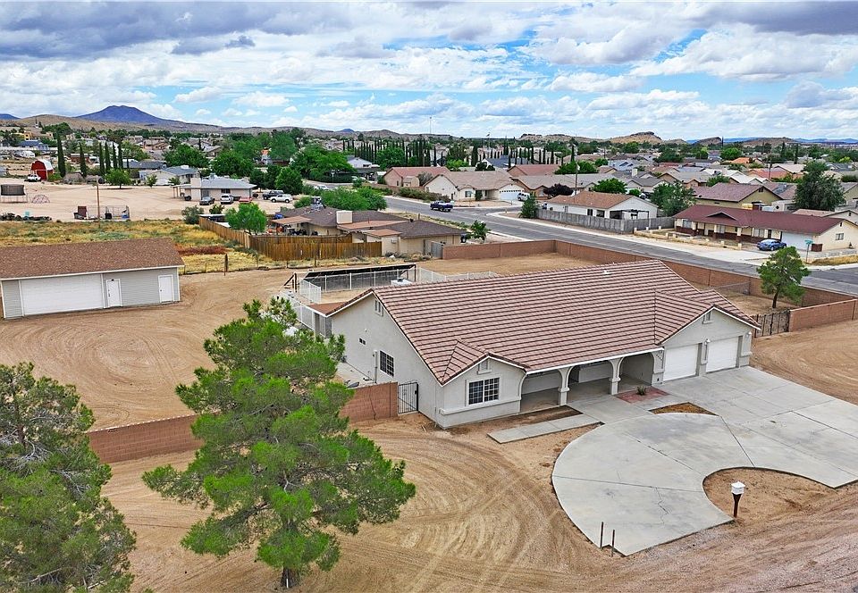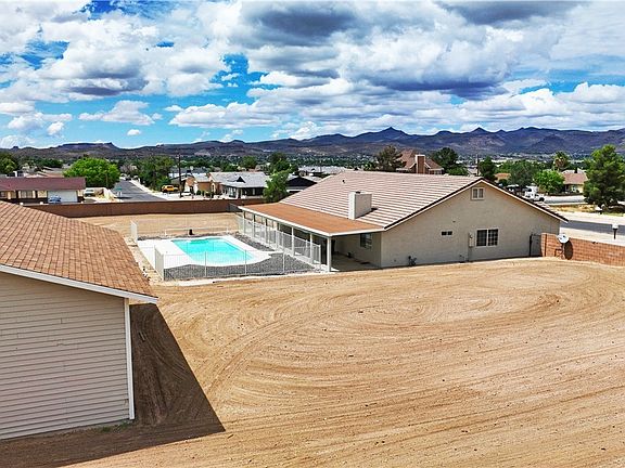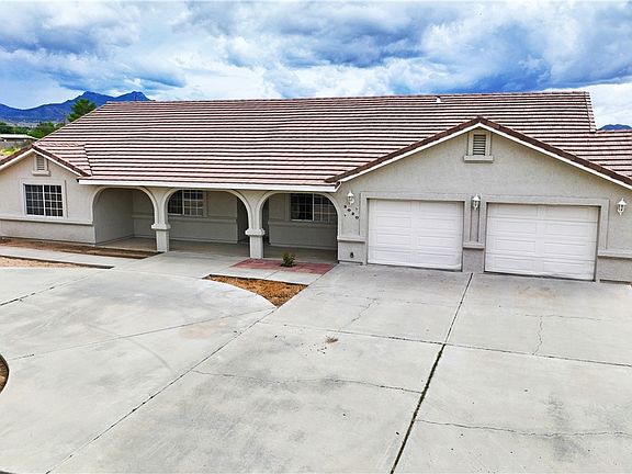 Sparkling Pool ~ Detached Garage ~ One Acre Corner Lot. This 2,478sf home has a large living room with vaulted ceilings, gas fireplace and opens into the casual dining area and kitchen. Kitchen was updated in 2022 with solid surface countertops, single bowl sink, pull down faucet, five burner gas cooktop, exhaust fan and tile backsplash. Split floor plan with the main bedroom on the SW corner of the home, walk in closet, dual sinks, big jetted tub and deep walk in tiled shower. The guest wing has 3 bedrooms and a bathroom with dual sinks and a cultured marble walk in shower. Right off the entry, is a bonus room with double doors and a formal dining room, this home could easily be converted to 6 bedrooms. Central heat and air, ceiling fans throughout, new carpet in main bedroom and bedroom two, all other floors are tile. Big laundry room with a utility sink, cabinets and a gas dryer hookup. Attached garage is 26.2 X 21.9 deep and detached garage is 40 X 28 deep, for a total of 1,693 sf of garage space. Cool inground pool with solar heat and security fence, long covered rear patio and the exterior of the home was just painted. This acre is fully fenced, in the city limits, has two RV gates 12 & 16 ft wide, NO HOA and horses are OK. 3020 Pasadena Ave, Kingman, AZ. Corner of Eastern