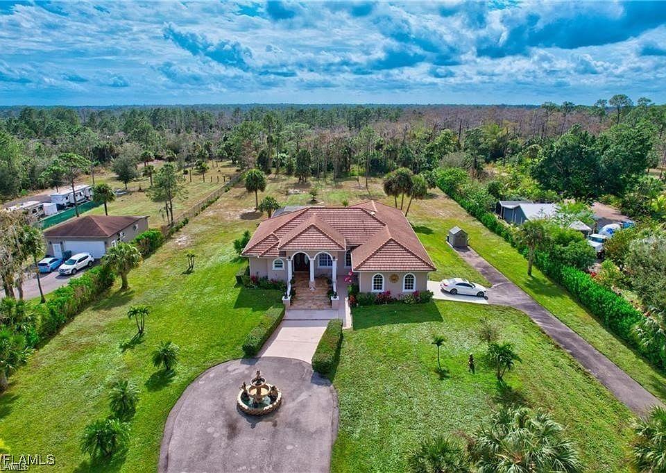 Luxury Living Meets Tranquil Privacy — Now at a Reduced Price! Welcome to your own slice of paradise in Golden Gate Estates: a stunning custom-built pool home nestled on 2.81 lush acres, where elegance, comfort, and security blend seamlessly. From the moment you arrive, the gated entrance with aluminum electric gates and a camera system sets the tone for the exclusivity and peace of mind this estate offers.