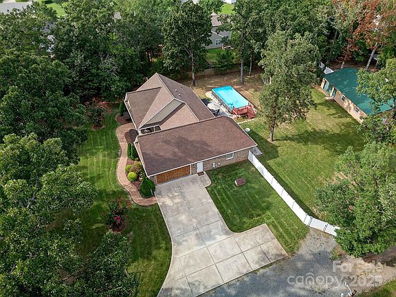 Rare 4-acre private estate located in the highly desirable northeast Charlotte area near Mallard Creek and Highland Creek, offering the perfect balance of suburban convenience and rural privacy. This brick home offers great potential for a family compound or your own private oasis, yet just minutes from modern conveniences. Sunroom/office and attic with fixed stair access ,excellent potential for future expansion. Heated kitchen and primary bathroom floors, along with his-and-hers sinks, add comfort and luxury. Invite family and friends to enjoy the outdoors and relax by the sparkling above-ground pool, surrounded by expansive, fenced, lush green space ideal for gatherings. Oversized 2-car garage and multiple detached structures, including a large workshop with kitchenette and ¼ bath, oversized storage building, detached 5-car garage, and RV parking, all with electricity and water. Irrigation system in both front and backyard. Opportunities are endless—truly a one-of-a-kind property!