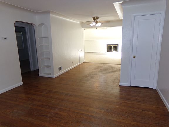 Fenced rear yardCarpeted family roomHardwood floorsCeiling fans