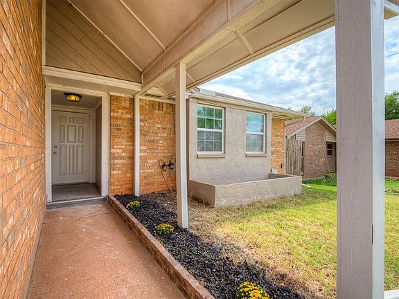 Ready to move in! This home has many updates including flooring, kitchen granite countertop, windows, remodeled bathroom and full interior paint, HVAC & water tank just a couple of years ago plus recently added upgrades with new kitchen cabinets for more storage, a new & modern vent hood, new bathroom countertops in granite, new tile by the front porch and landscaping. Builtin station with granite counter and shelves to set up a nice bar or buffet table with additional cabinets in the living area. Cedar-wood fireplace shelf. This home is not only beautiful and well maintained, also its conveniently located and makes it a great investment opportunity. Located just minutes from Tinker AFB, OKC Downtown and all the shopping, restaurants and entertainment along I-240. Walking distance to elementary school & Metro Technology Center. Just five minutes from Trosper Park & Golf club. *Washer and microwave stay with the property.